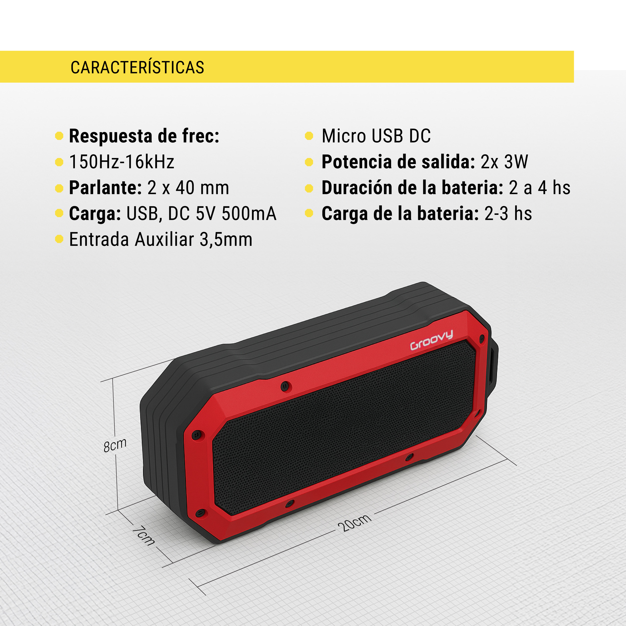 Experimenta la música como nunca antes con el Parlante Portátil Bluetooth Groovy 8x-L. Diseñado para el amante de la música que busca calidad y portabilidad, este parlante ofrece una potencia de salida de 5 W, perfecta para disfrutar de tus canciones favoritas en cualquier lugar.