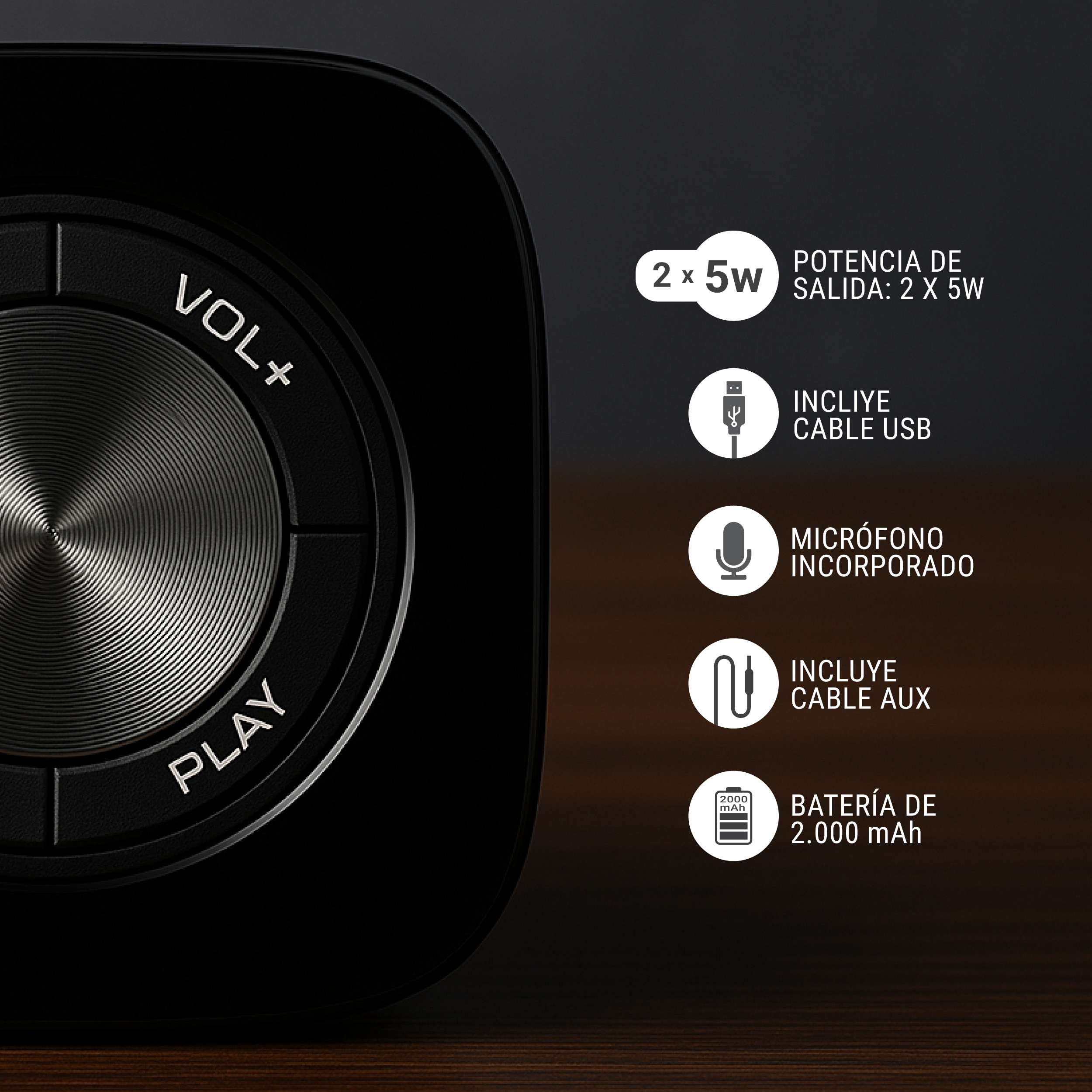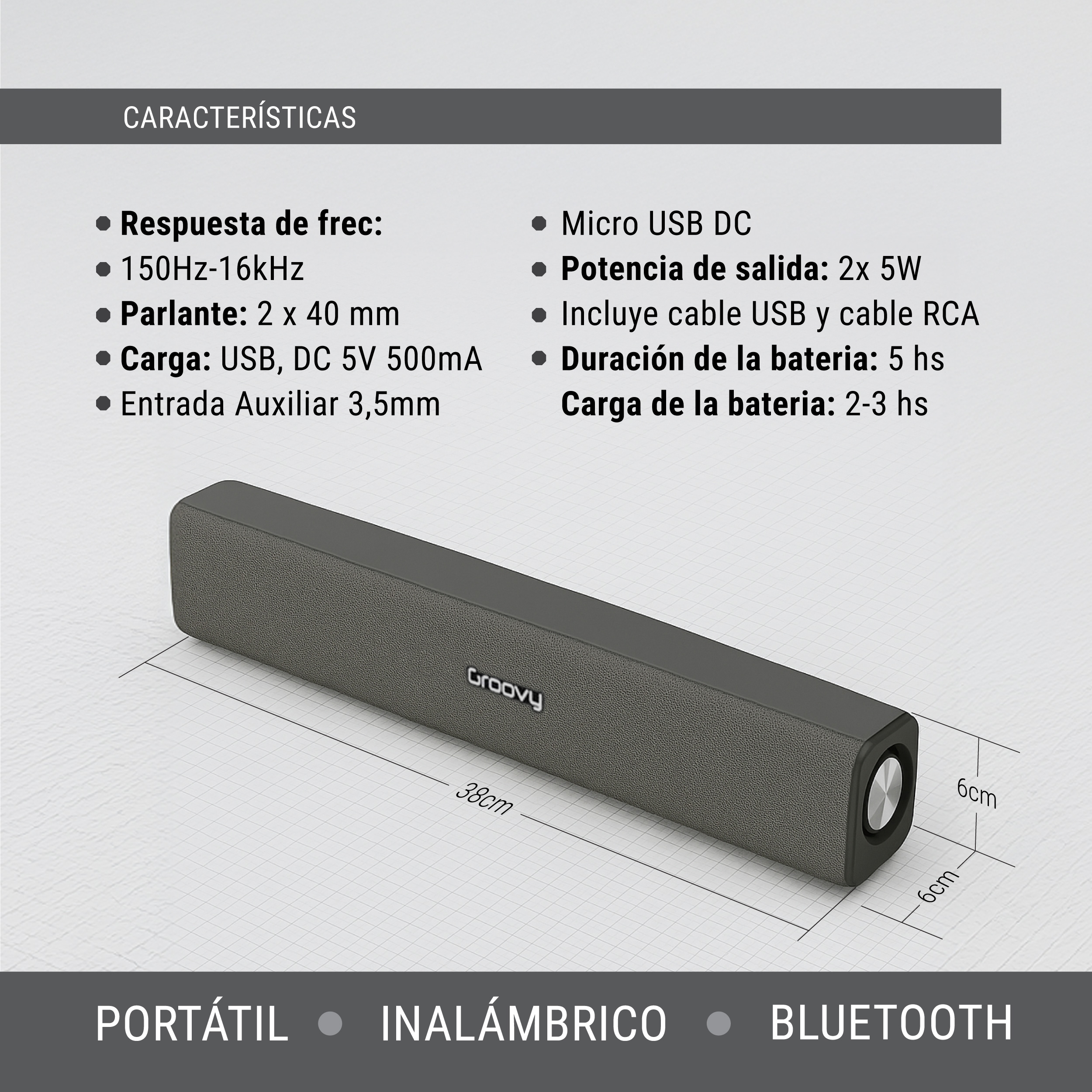 Con un tiempo de autonomía de hasta 5 horas, el GROOVY BT-2610 garantiza que la música no se detenga. Se alimenta a través de un micro USB DC, permitiéndote recargarlo sin complicaciones. Su conectividad Bluetooth asegura que puedas reproducir tus canciones desde cualquier dispositivo compatible de forma rápida y sencilla.